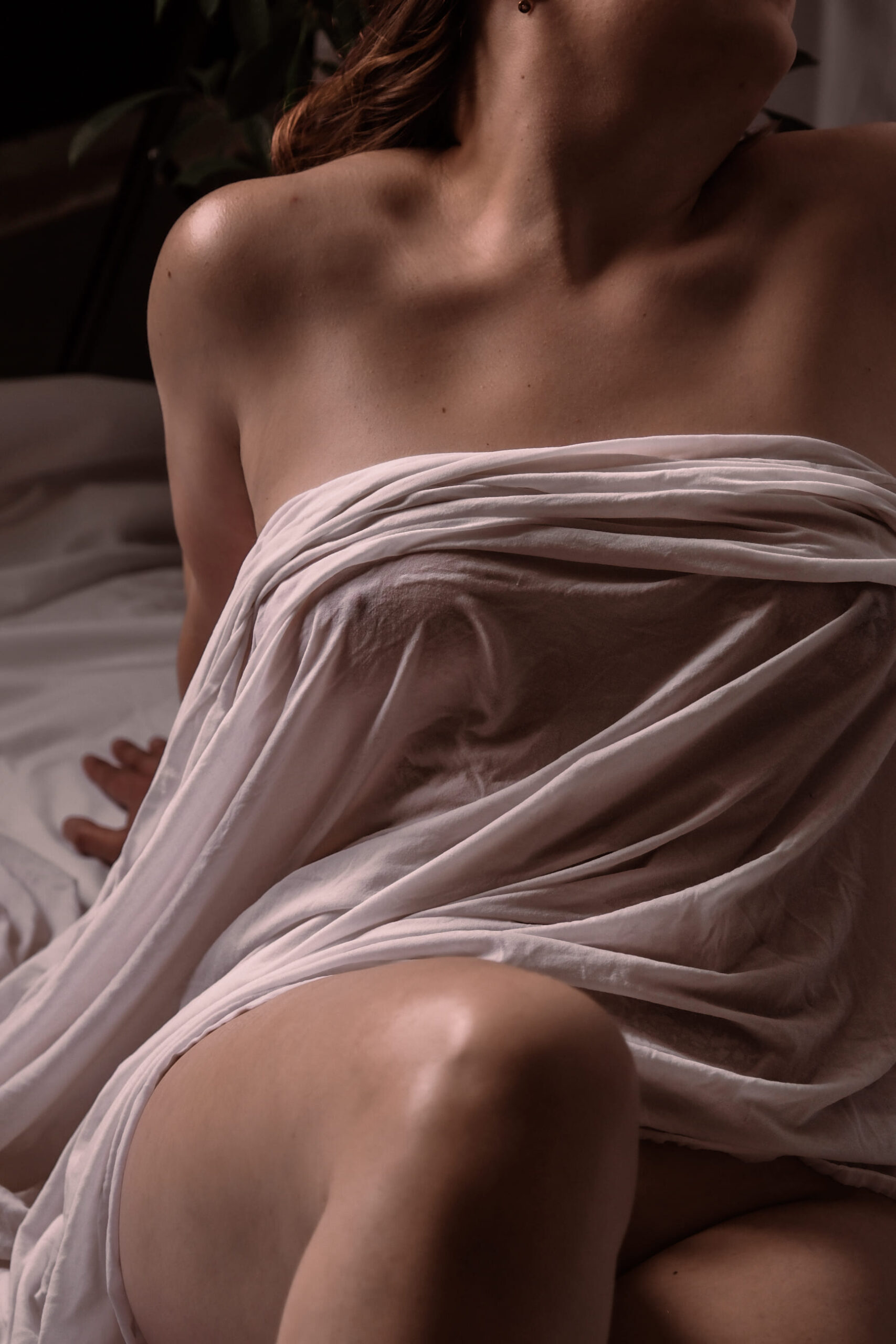 Je te guide pour chaque pose. Le clair-obscur permet de suggérer sans tout montrer, c’est très rassurant et terriblement artistique. Je travaille chaque photo comme une peinture pour lui donner cette profondeur unique.